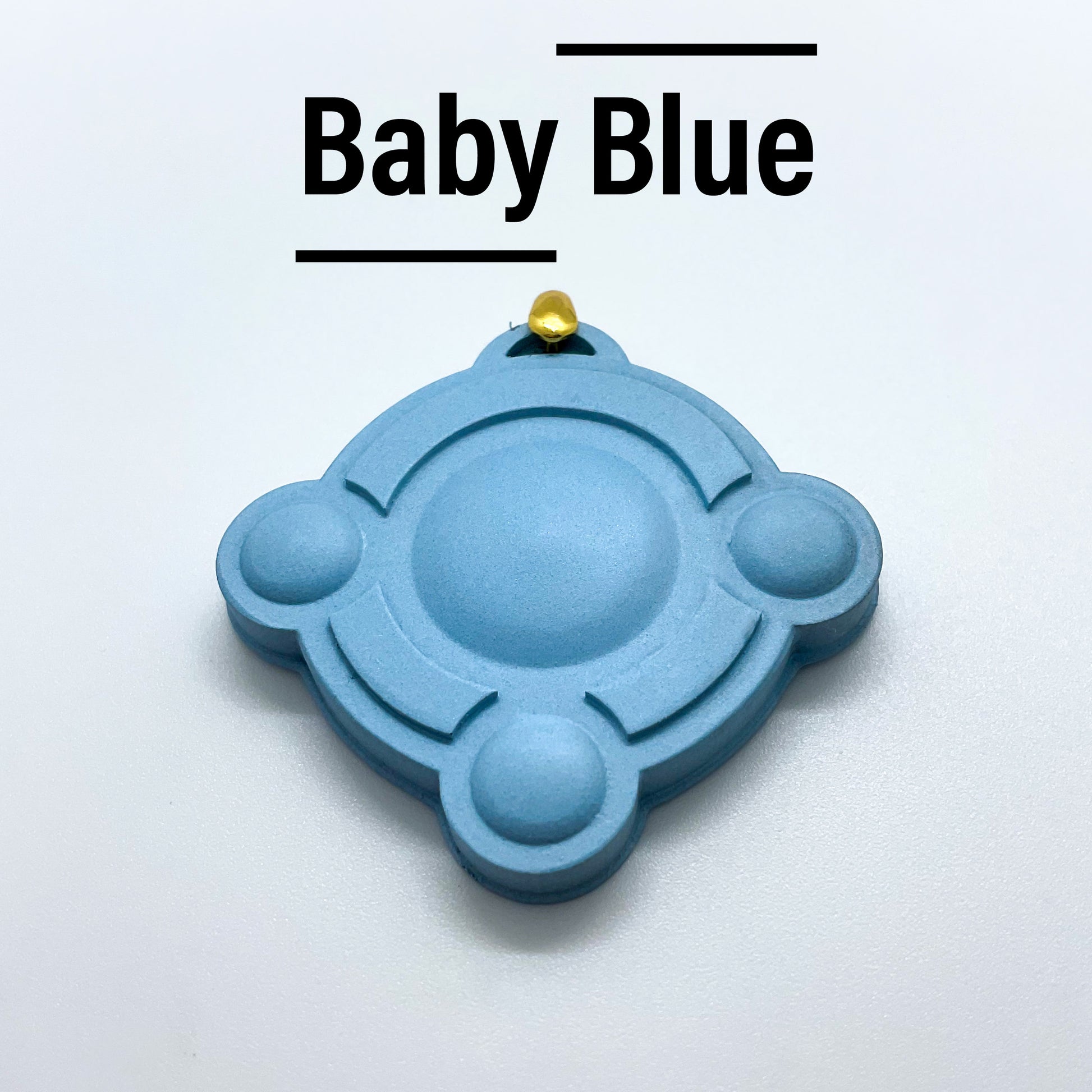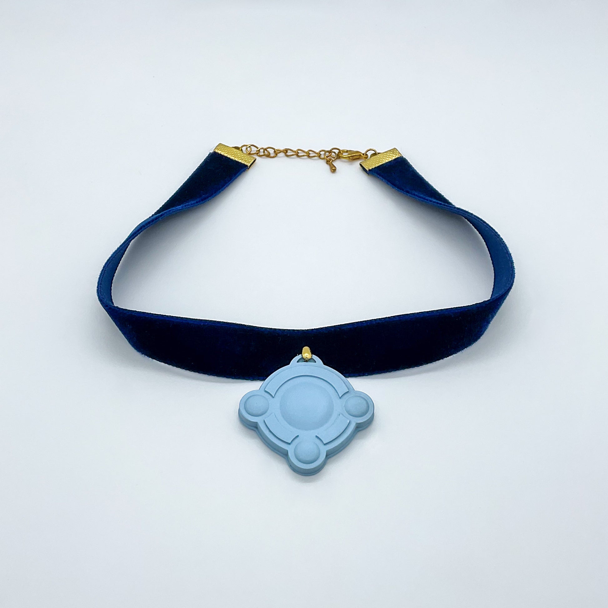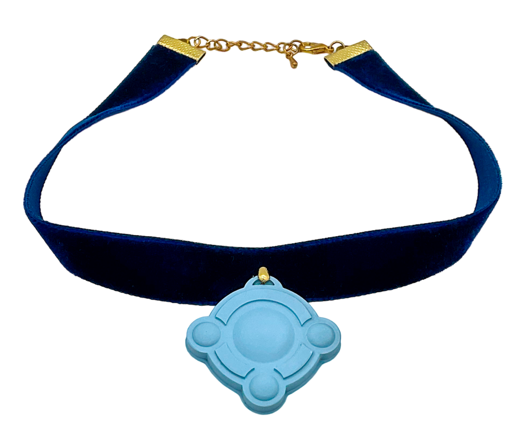 To make it look like a piece of ice the transparent, blue tint was chosen. Some imperfections in shape were made on purpose to make it look like a hand-carved piece of jewellery.