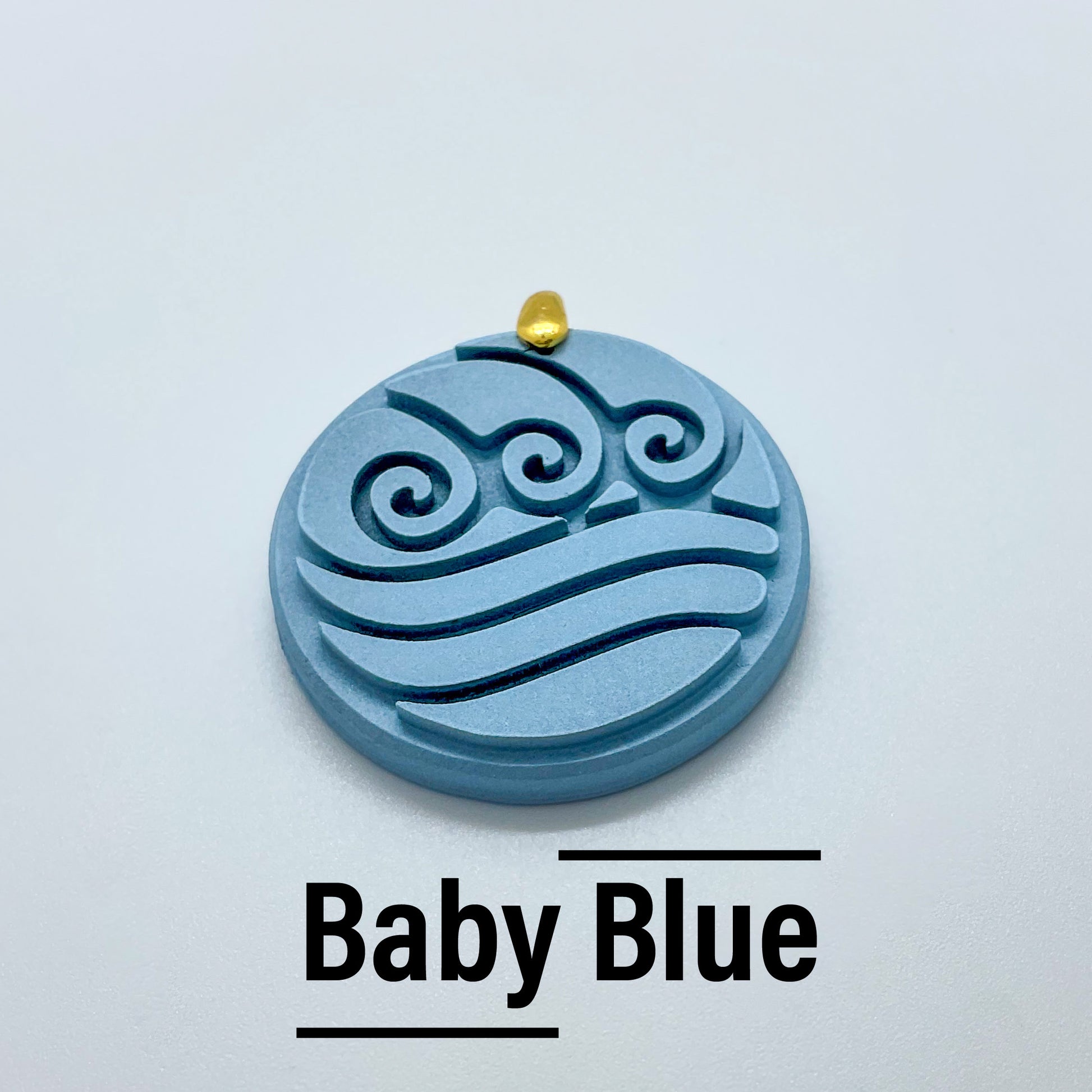 To make it look like a piece of ice the transparent, blue tint was chosen. Some imperfections in shape were made on purpose to make it look like a hand-carved piece of jewellery.